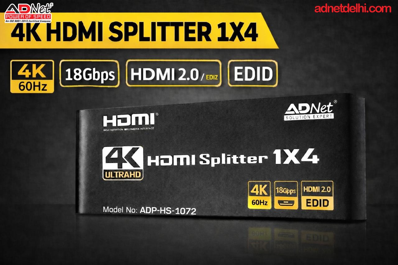 The ADP-HS-1072 is a high-performance 1×4 HDMI Splitter designed to take a single HDMI source (like a gaming console, cable box, or laptop) and distribute it to four separate HDMI displays simultaneously.
