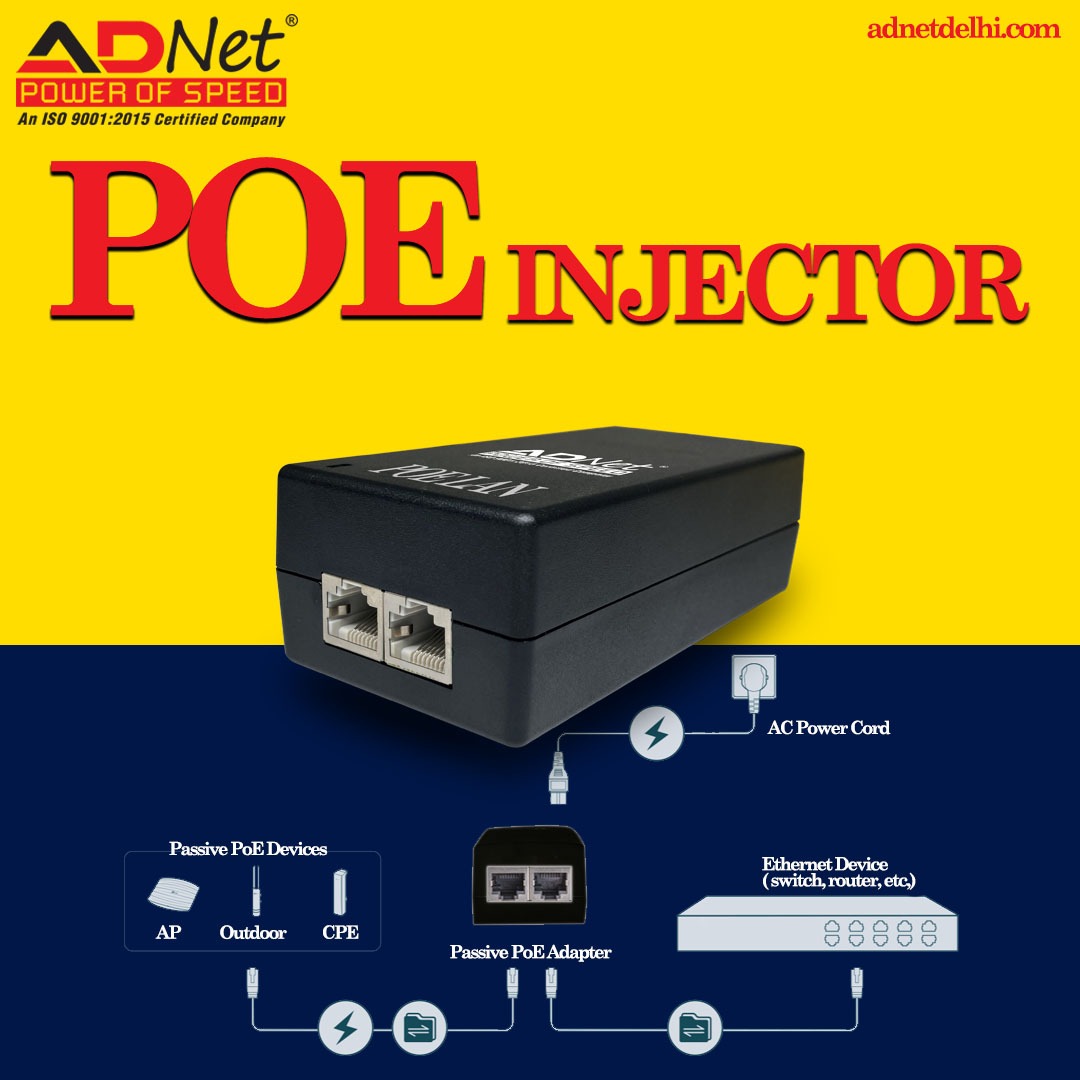 he ADNet AD-DC-425 is a high-power Power over Ethernet (PoE) injector designed to provide both data connectivity and electrical power to PD (Powered Devices) over a single Ethernet cable.