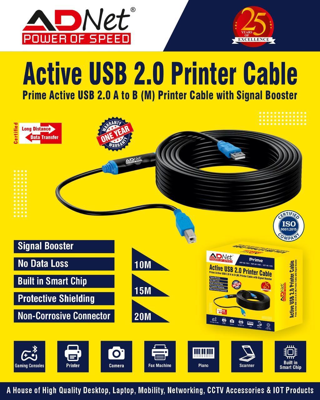 The ADNet ADP-AB-1005 is a specialized USB 2.0 cable designed to bridge the gap between long-distance connectivity and signal integrity. Standard USB cables typically lose performance after 5 meters, but this cable uses active electronics to maintain high-speed data transfer over a 20-meterÂ